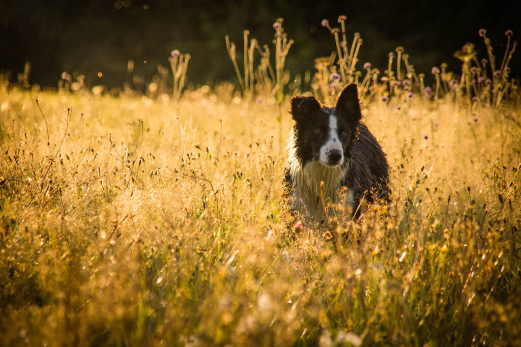 Unverzichtbarer Helfer bei der täglichen Arbeit mit den Schafen und Rindern sind unsere Border Collies. Egal, ob das Einholen der Tiere zur Kontrolle, ein einzelnes Schaf aus der Herde fangen, Verladen oder das zurückhalten und nachtreiben der Schafe beim umkoppeln und umtreiben. Sie erledigen jeden Job zuverlässig und vereinfachen die Arbeit ungemein. Auch bei den Rindern unterstützen sie uns tatkräftig. Auf der Seite der Arbeitsgemeinschaft Border Collie Deutschland e.V. finden sie weitere Informationen zur Arbeitsweise und Rasseeigenschaften des Border Collies.